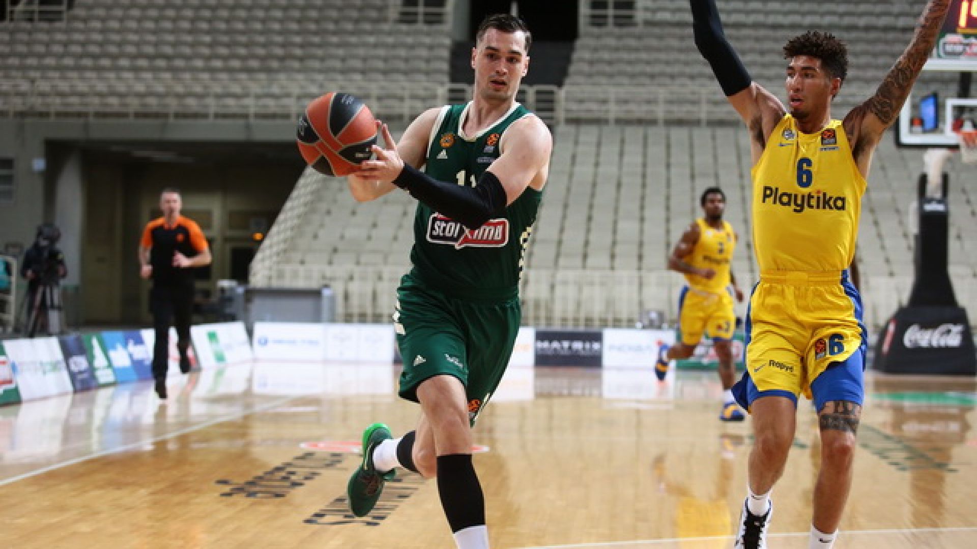Μέ ένα όμορφο κάρφωμα στο 2ο λεπτό  της αναμέτρησης παναθηναϊκός - Μακάμπι ό Μάριο Χεζόνια έδωσε προβάδισμα 6 πόντων στους πράσινους.