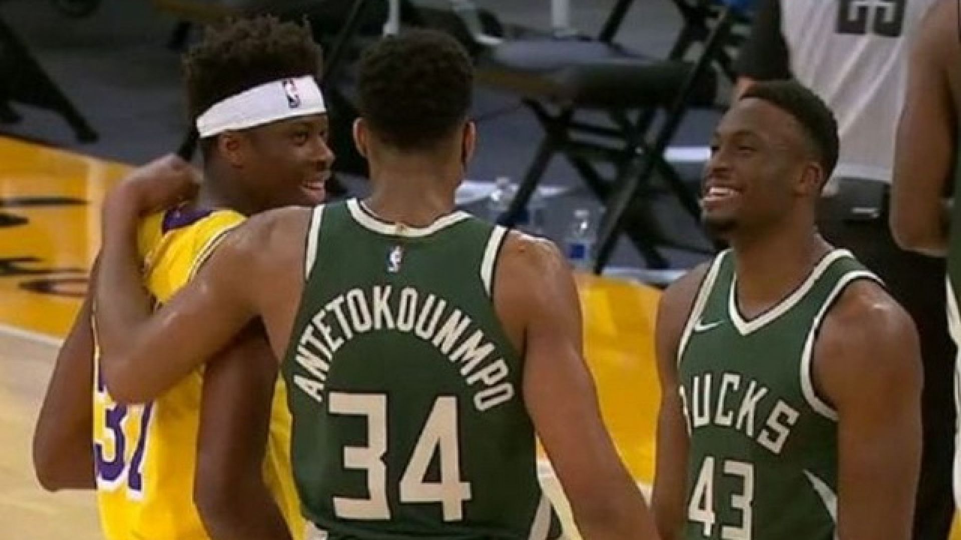Και αυτό γιατί οι Γιάννης, Θανάσης, από πλευράς Μπακς και Κώστας, από πλευράς Λέικερς, έγιναν μόλις η δεύτερη τριάδα αδελφών ( μετά τους Τζρόυ, Τζάστον και Άαρον Χόλιντεϊ, το 2019), που συνυπήρξε στο παρκέ, στο ίδιο παιχνίδι!