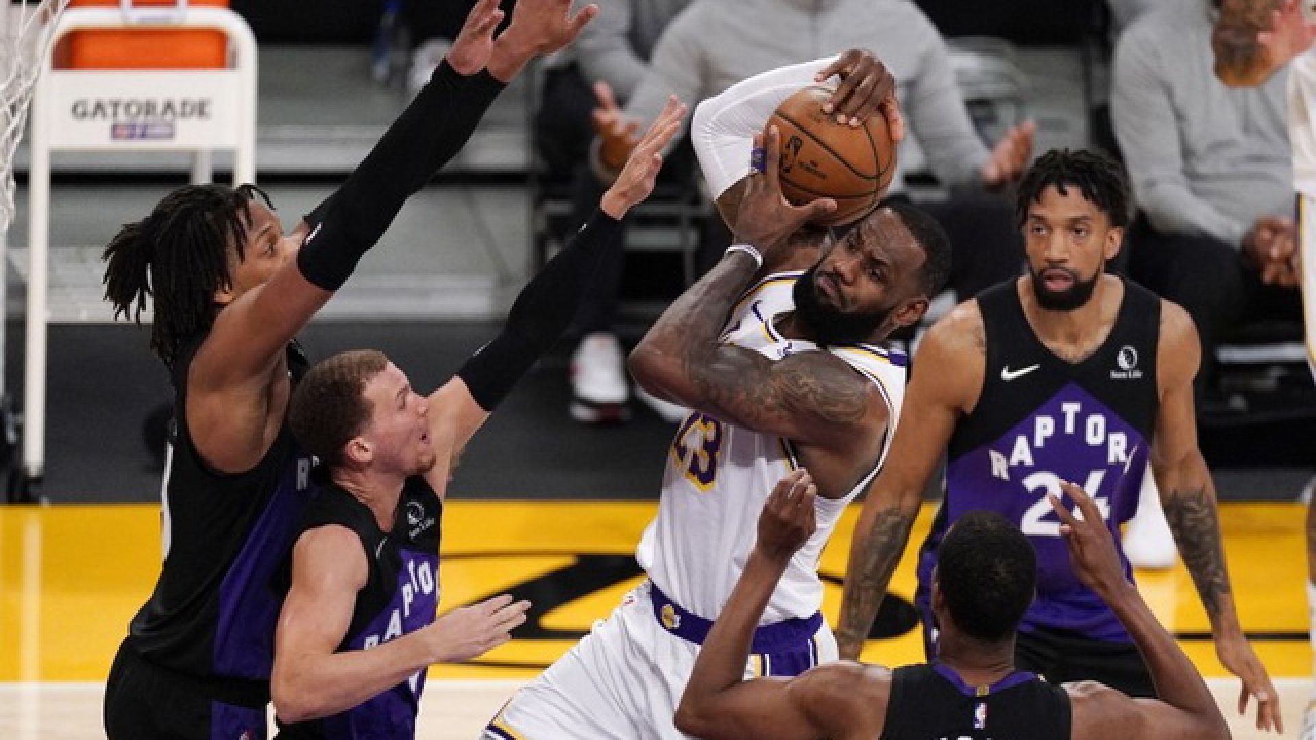 Διπλό το κακό για τους Λέικερς, που είδαν τους Ράπτορς να επικρατούν μέσα στο Λος Άντζελες με 121-114 και τον Λεμπρόν Τζέιμς να αποχωρεί στα μέσα της τέταρτης περιόδου, λόγω ενοχλήσεων στον αστράγαλο, στον οποίο είχε υποστεί το διάστρεμμα που τον άφησε εκτός για 20 αγώνες.