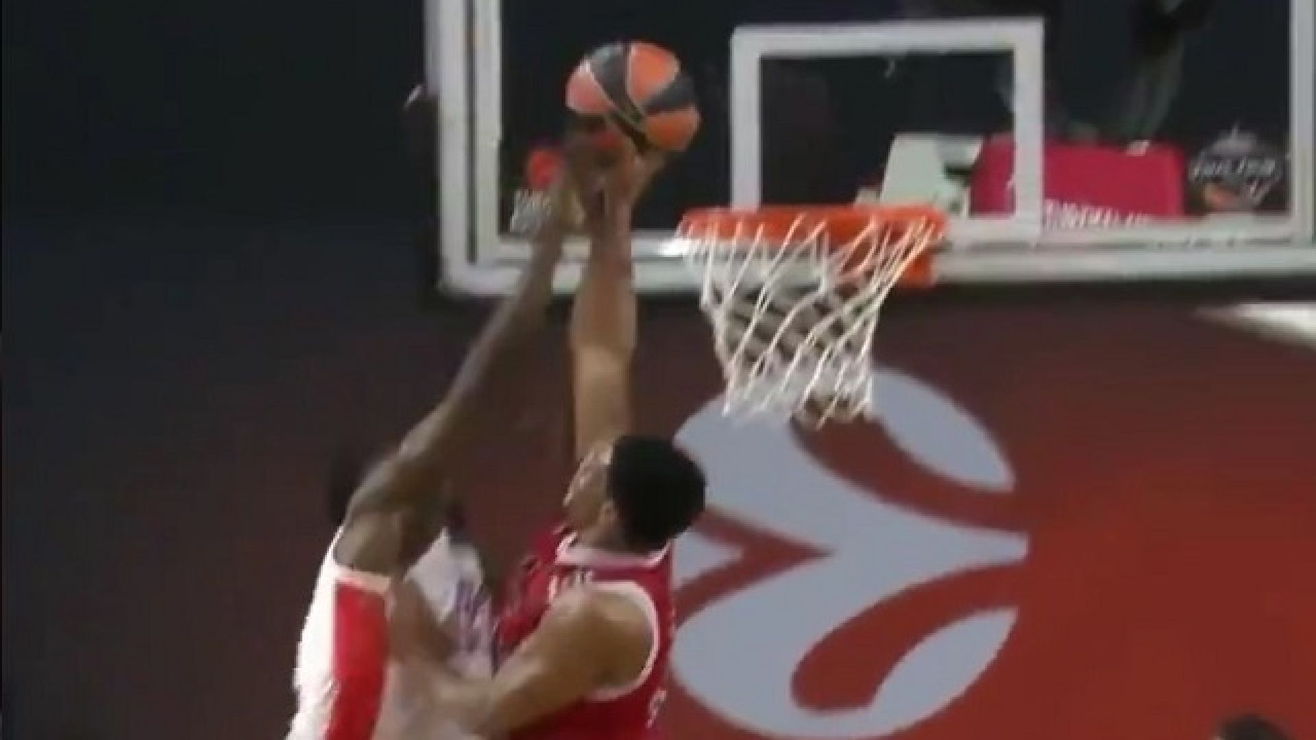 Ο Μάικλ Έρικ προσπάθησε να καρφώσει στο καλάθι της Αρμάνι Μιλάνο, ωστόσο υπολόγιζε χωρίς τον Κάιλ Χάινς, ο οποίο πήδηξε ψηλά και σταμάτησε την προσπάθειά του.