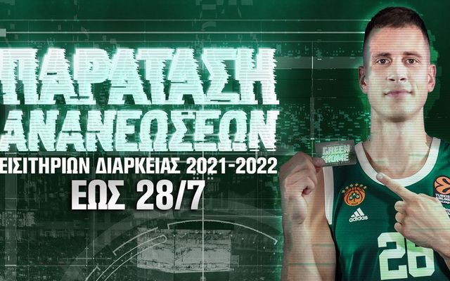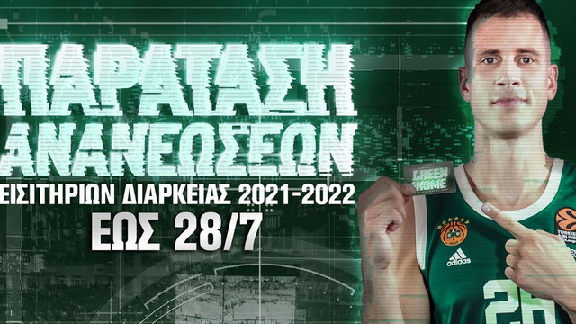 «Η ΚΑΕ Παναθηναϊκός ΟΠΑΠ ενημερώνει τους κατόχους διαρκείας της σεζόν 2019–2020 και της σεζόν 2020-2021 πως, λόγω της μεγάλης ζήτησης που υπάρχει, η διαδικασία ανανεώσεων των εισιτηρίων διαρκείας για την αγωνιστική περίοδο 2021–2022 παίρνει παράταση μέχρι την Τετάρτη 28/7.