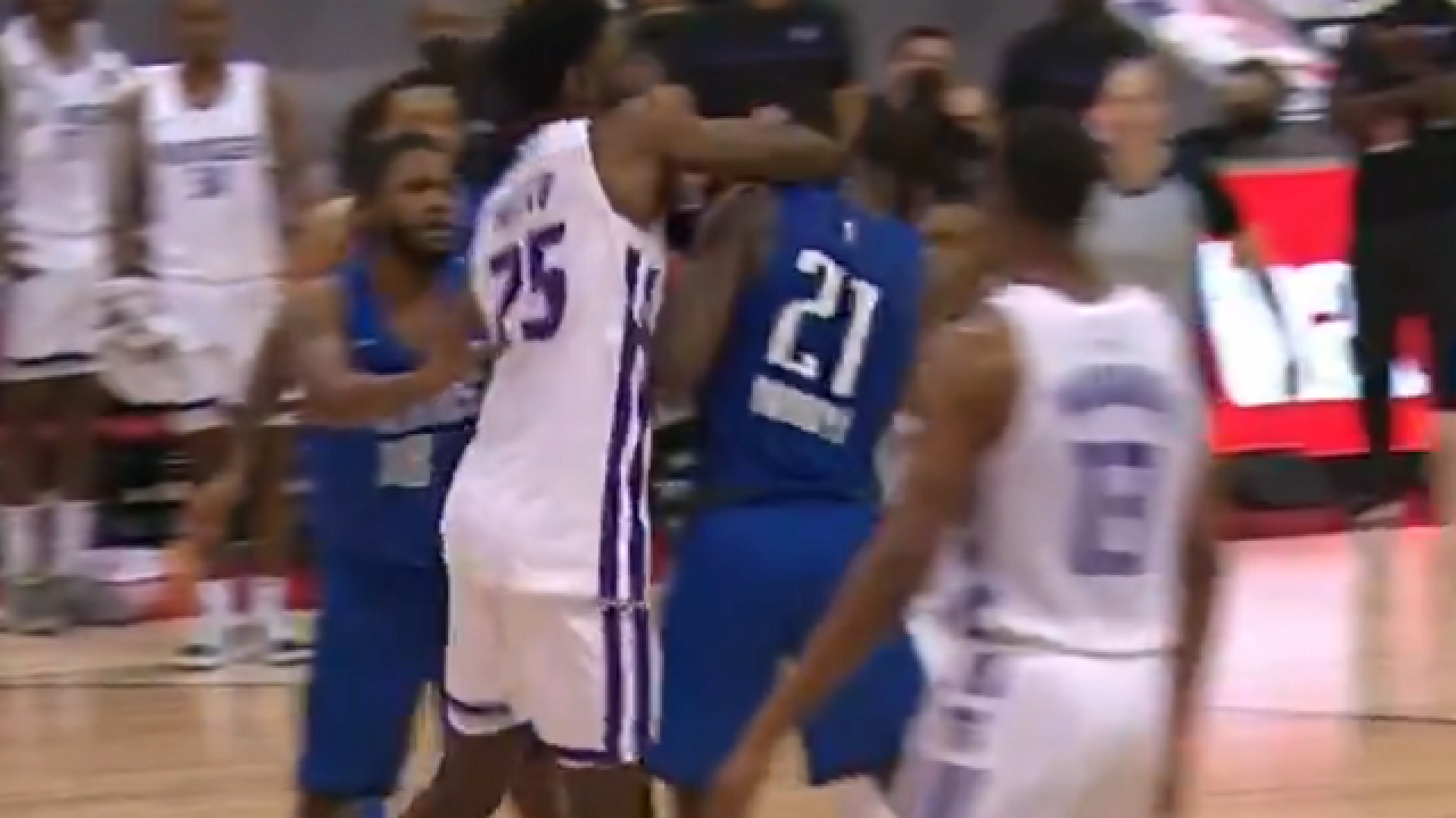 Το... έλα να δεις έγινε στο Summer League του Λας Βέγκας και στον αγώνα ανάμεσα στους Κινγκς και στους Μάβερικς, με τον Τσιμέζι Μέτου να... ρίχνει γροθιά στον Γιουτζίν Ομορούγι.