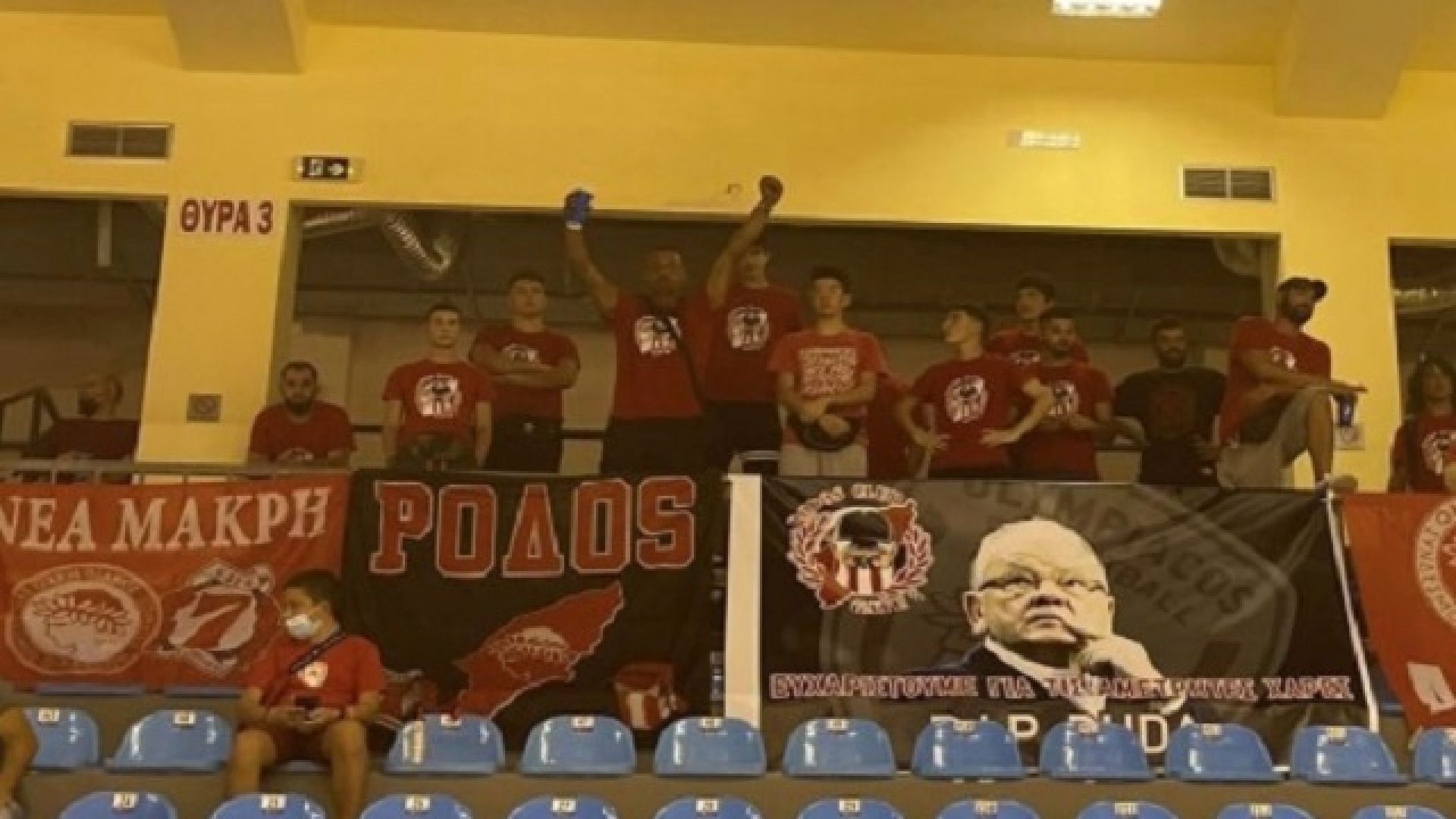 Οι φίλοι του Ολυμπιακού που έδωσαν το «παρών» στην Ρόδο για τον αγώνα των ερυθρόλευκων με τον Κολοσσό κρέμασαν ένα όμορφο πανό εις μνήμην του Ντούσαν Ίβκοβιτς.