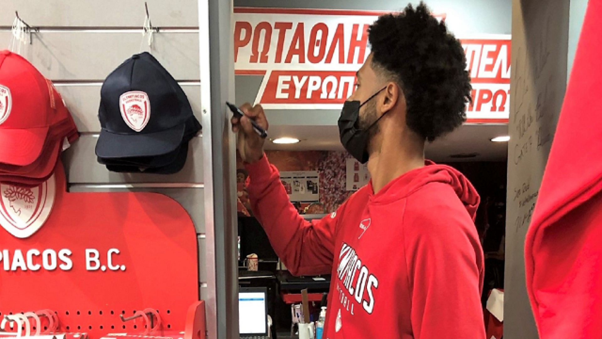 Ο γκαρντ του Ολυμπιακού, Τάιλερ Ντόρσεϊ, επισκέφθηκε το OlympiacosBC Official Store και έκανε τις «ερυθρόλευκες» αγορές του.
