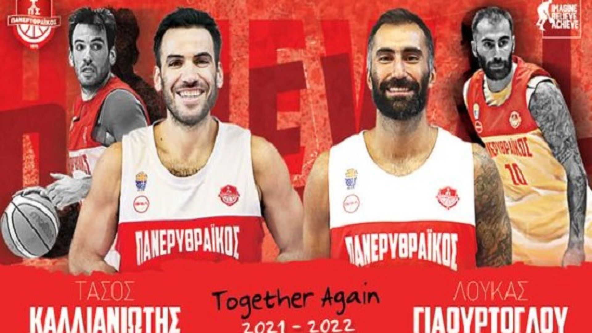 Ο Πανερυθραϊκός ΑΣ-Τμήμα Μπάσκετ, με ιδιαίτερη χαρά και σεβασμό στην ιστορία του, ανακοινώνει ότι οι αρχηγοί μας, Τάσος Καλλιανιώτης και Λουκάς Γιαουρτόγλου, θα συνεχίσουν να ηγούνται της ομάδας μας, βροντοφωνάζοντας ''παρών''και στο μεγαλόπνοο πρότζεκτ του νέου Μοντέλου Ανάπτυξης του Συλλόγου!
