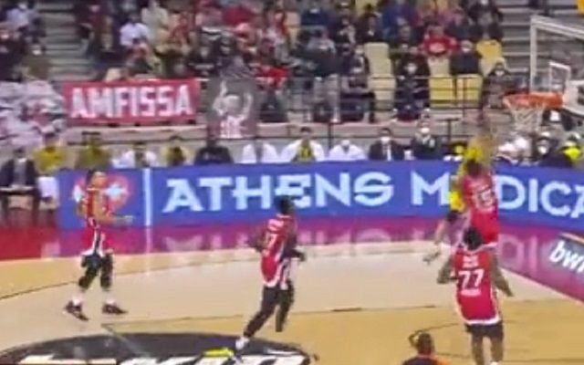 Οι Μάρκο Γκούντουριτς και Γιαν Βέσελι έβγαλαν μία όμορφη συνεργασία στην αναμέτρηση της Φενέρμπαχτσε με τον Ολυμπιακό, με τον πρώτο να υψώνει και τον δεύτερο να καρφώνει τη μπάλα στο καλάθι των ερυθρόλευκων και να διαμορφώνει το 45-34 του πρώτου μισού του αγώνα.