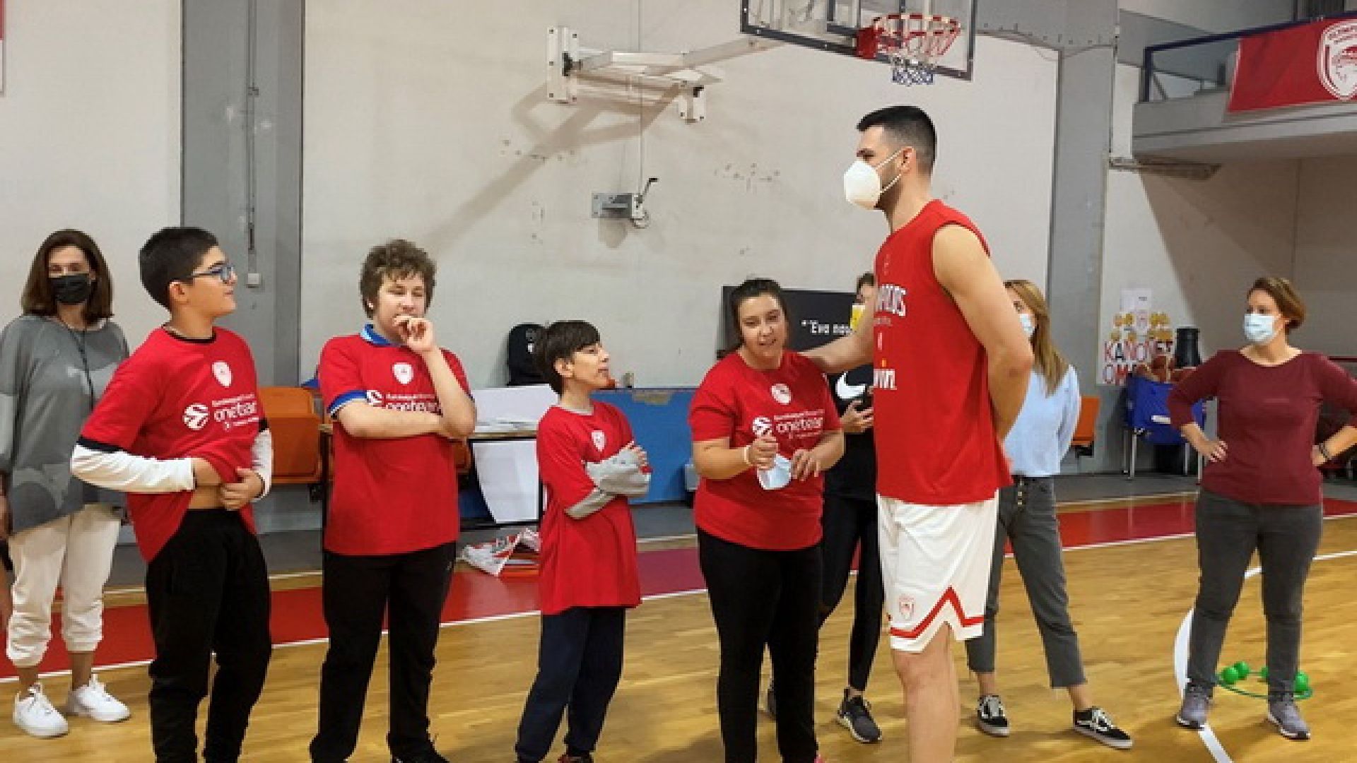 Ο φόργουορντ του Ολυμπιακού, ο μακροβιότερος πρεσβευτής του προγράμματος της Ευρωλίγκα, δεν είχε προγραμματισμένο ραντεβού με τους αθλητές μας. Ενημερώθηκε, ωστόσο, πως γινόταν προπόνηση του ONE Team στο βοηθητικό του ΣΕΦ και δεν έχασε την ευκαιρία να ξεκλέψει λίγο χρόνο από τη δική του προπόνηση, ώστε να περάσει και να καλωσορίσει προσωπικά τα νέα μέλη του προγράμματος, τους μαθητές του 1ου Ειδικού Σχολείου Αγίου Δημητρίου.