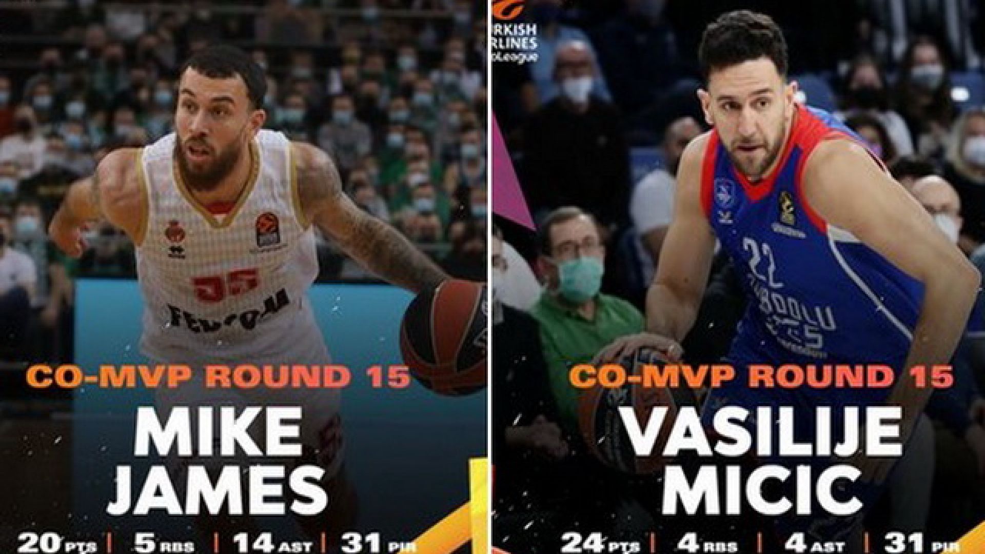 Συγκεκριμένα, ο Αμερικανός άσος της Μονακό είχε 20 πόντους, 14 ασίστ και πέντε ριμπάουντ, απέναντι στην Ζαλγκίρις ενώ ο αστέρας της Εφές, είχε 24 πόντους, τέσσερις ασίστ και τέσσερα ριμπάουντ, κόντρα στην Μπασκόνια, με αμφότερους να συγκεντρώνουν 31 βαθμούς στο σύστημα ranking.