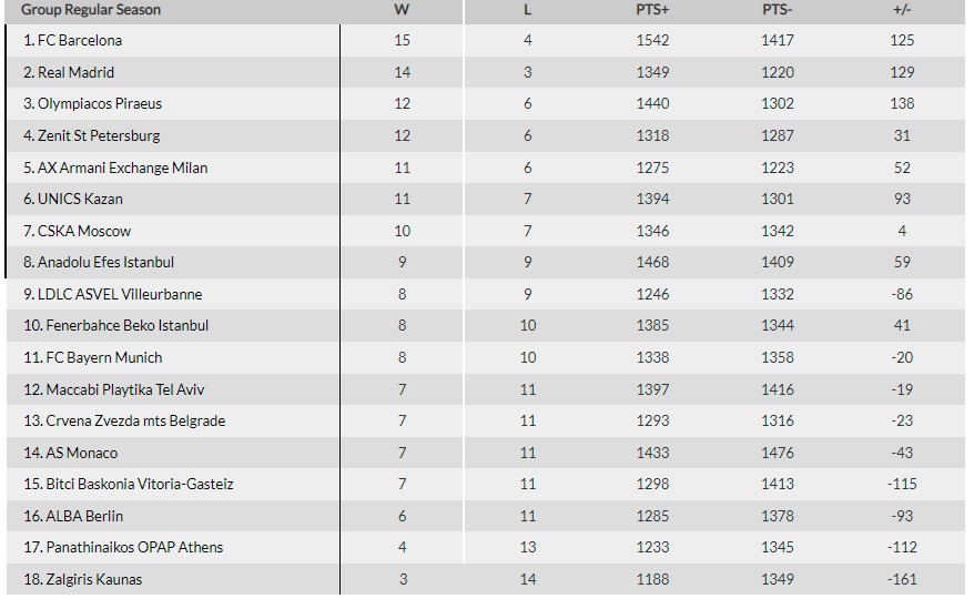 Στις σημερινές αναμετρήσεις της 20ής αγωνιστικής της Ευρωλίγκας είχαμε τα εξής αποτελέσματα:
