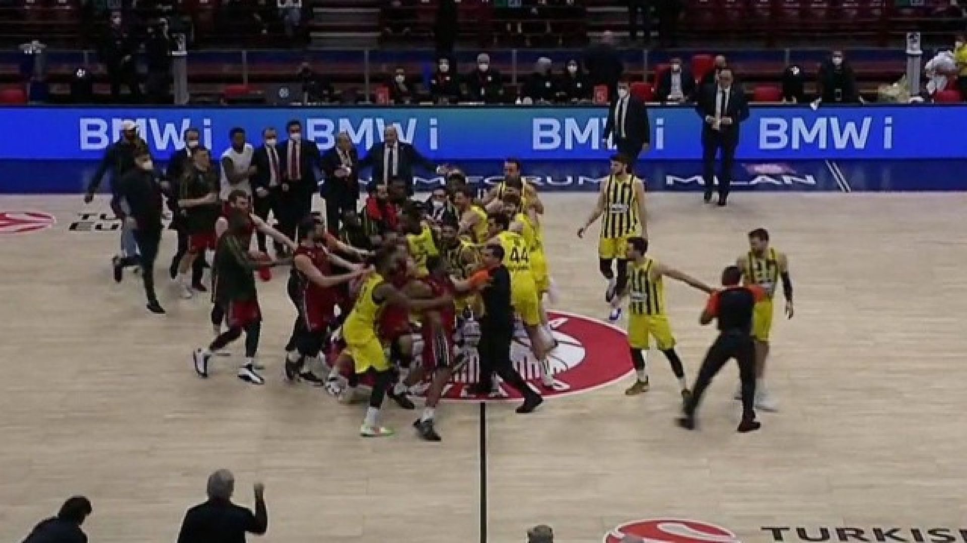 Χαμός στο φινάλε του αγώνα Αρμάνι Μιλάνο - Φενέρμπαχτσε, στο οποίο η Τουρκική ομάδα νίκησε εκτός έδρας με 71-60, με τον Κάιλ Χάινς να τρελαίνεται από κάποια λόγια του Μάρκο Γκούντουριτς και να γίνεται σύρραξη στο φινάλε της αναμέτρησης.