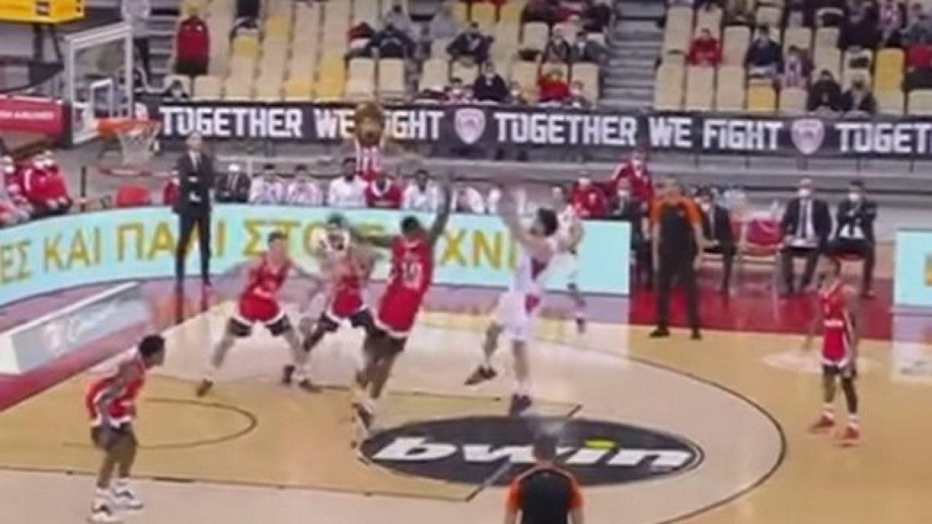 Το ρολόι έδειχνε 2’21’’ πριν το φινάλε του έξτρα πενταλέπτου, με το σκορ στο 81-80 υπέρ του Ολυμπιακού, όταν ο Μπράιαντ σηκώθηκε από το σημείο των βολών, με τον Φαλ όμως να τον σταματά εντυπωσιακά, στέλνοντας την μπάλα στον… πάγκο των "ερυθρόλευκων"!