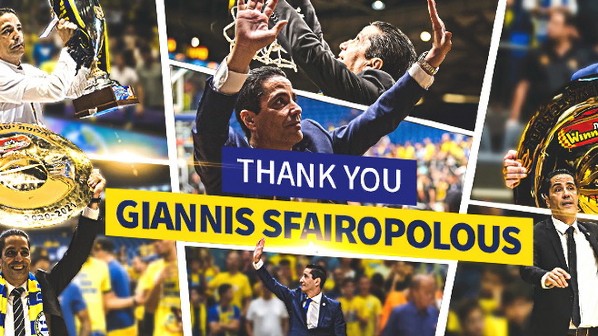Η Μακάμπι Τελ Αβίβ επιθυμεί να ευχαριστήσει τον προπονητή Γιάννη Σφαιρόπουλο για την αλλαγή της κουλτούρας στην ομάδα όταν έφτασε, τη συμβολή του στην ανάδειξη νέων παικτών και προπονητών, οδηγώντας την ομάδα σε μια εξασφαλισμένη θέση στα playoffs της EuroLeague την ημιτελή σεζόν 2019/20 και φυσικά για την κατάκτηση τριών συνεχόμενα πρωταθλήματα Ισραήλ, ένα State Cup και δύο Winner Cups κατά τη διάρκεια των τρεισήμισι σεζόν του, δημιουργώντας παράλληλα μια ιδιαίτερη σύνδεση με το πνεύμα και την κληρονομιά της Μακάμπι. Καλή τύχη».