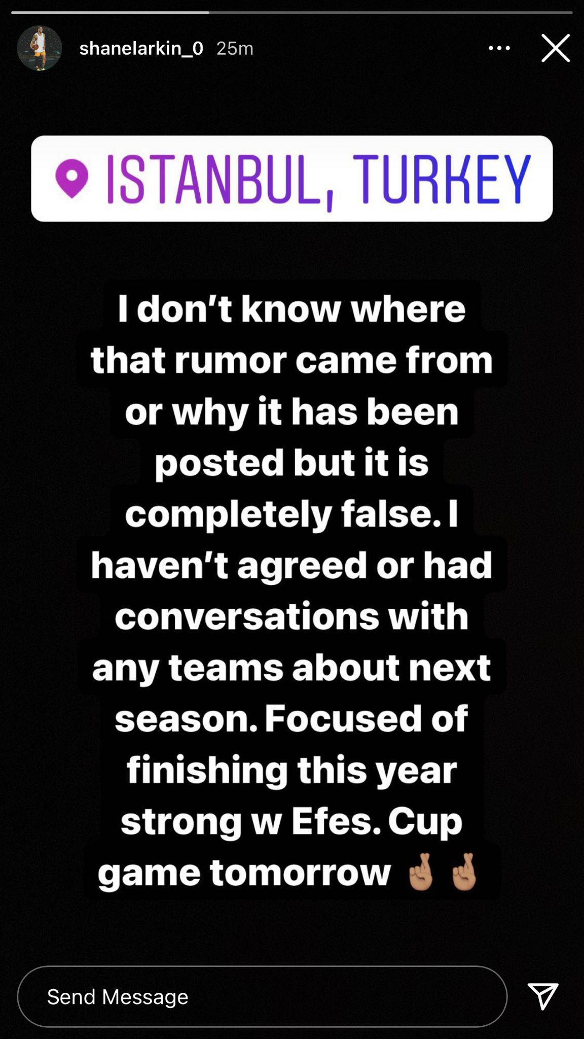 "Δεν ξέρω από που προήλθαν αυτές οι φήμες και γιατί δημοσιεύτηκε κάτι τέτοιο, αλλά είναι εντελώς αναληθή τα όσα λέγονται. Δεν έχω συμφωνήσει ή έχω καμία συνομιλία με καμία ομάδα, αναφορικά με την νέα σεζόν. Είμαι συγκεντρωμένος στο να τελειώσουμε δυνατά την σεζόν με την Εφές. Έχουμε αγώνα κυπέλλου αύριο", αναφέρει η ανάρτηση του Λάρκιν στα social media, διαψεύδοντας κατηγορηματικά τα όσα ακούγονται τις τελευταίες ώρες.
