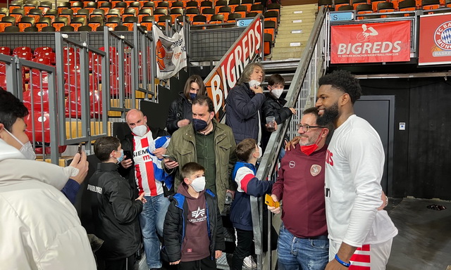 Οι «ερυθρόλευκοι» φίλαθλοι, 250 τον αριθμό, μετέτρεψαν σε ΣΕΦ την «Audi Dome», με τον Ολυμπιακό να τους τιμά, αρχικά βγάζοντας φωτογραφίες μαζί τους, τόσο πριν όσο και μετά το φινάλε της αναμέτρησης και εν συνεχεία δημοσιεύοντας τις, στην επίσημη σελίδα των "ερυθρόλευκων".