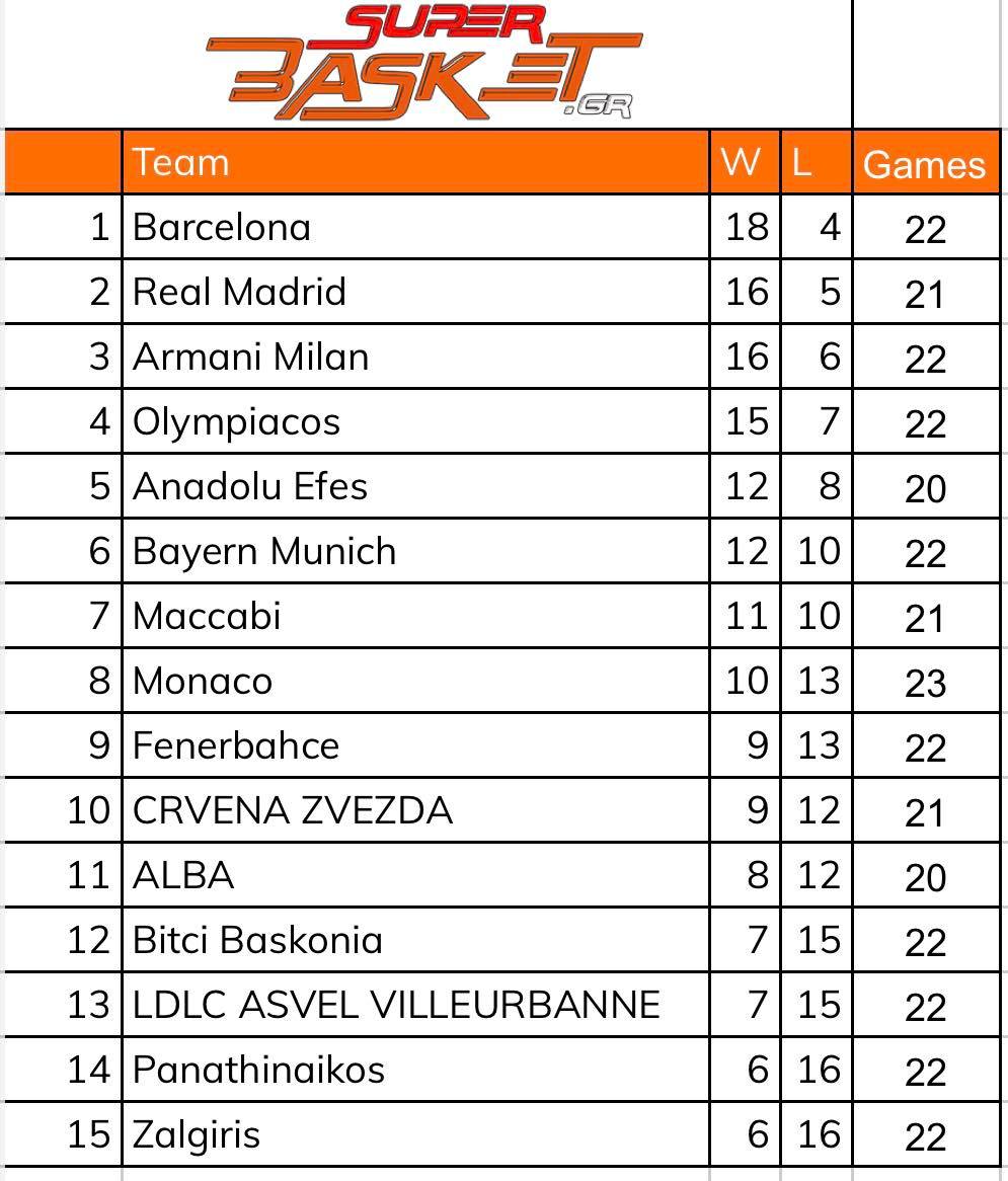 Η EuroLeague Basketball σε συνεννόηση με τις 15 ομάδες που συνεχίζουν στη διοργάνωση, ύστερα από τις εξελίξεις με τις τρεις ρωσικές ομάδες (Ούνικς Καζάν, ΤΣΣΚΑ Μόσχας και Ζενίτ) αποφάσισαν τη Δευτέρα (7/3) να διαμορφωθεί η βαθμολογία της Ευρωλίγκας δίχως να λαμβάνονται υπ’ όψιν τα αποτελέσματα των τριών ρωσικών ομάδων (Ούνικς Καζάν, ΤΣΣΚΑ Μόσχας και Ζενίτ) στην κανονική διάρκεια.