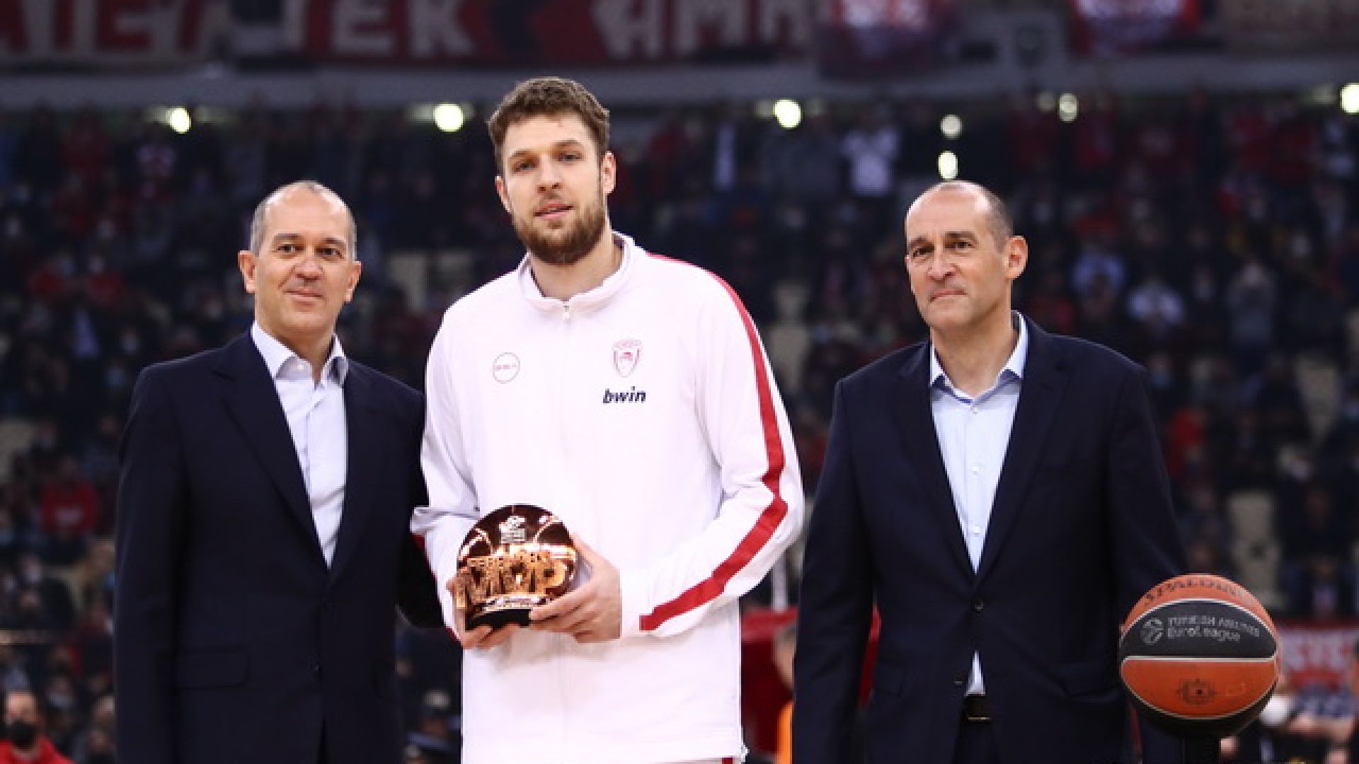 Ξεχωριστή τιμή για τον Σάσα Βεζένκοβ, πριν την έναρξη του αγώνα με τον Παναθηναϊκό, με τους προέδρους της ΚΑΕ Ολυμπιακός, Παναγιώτη και Γιώργο Αγγελόπουλο, να παραδίδουν στον «ερυθρόλευκο» φόργουορντ το βραβείο του MVP της Euroleague για τον μήνα Φεβρουάριο.