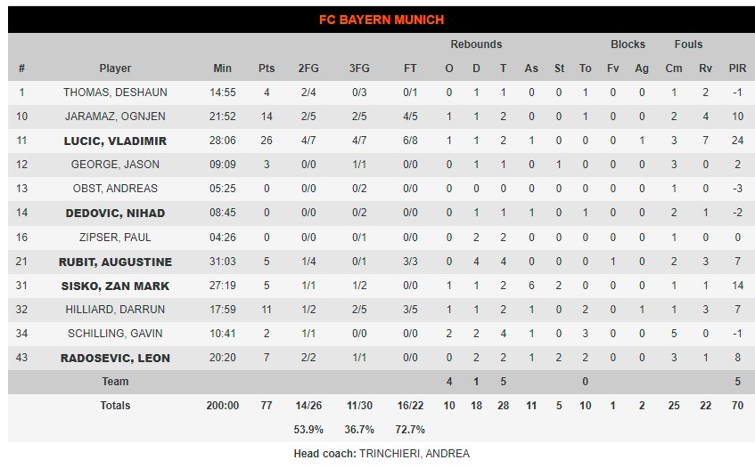Για τους Ιταλούς ξεχώρισε ο Σιλντς (15 πόντοι) και για τους Γερμανούς ο Λούσιτς (20 πόντοι).