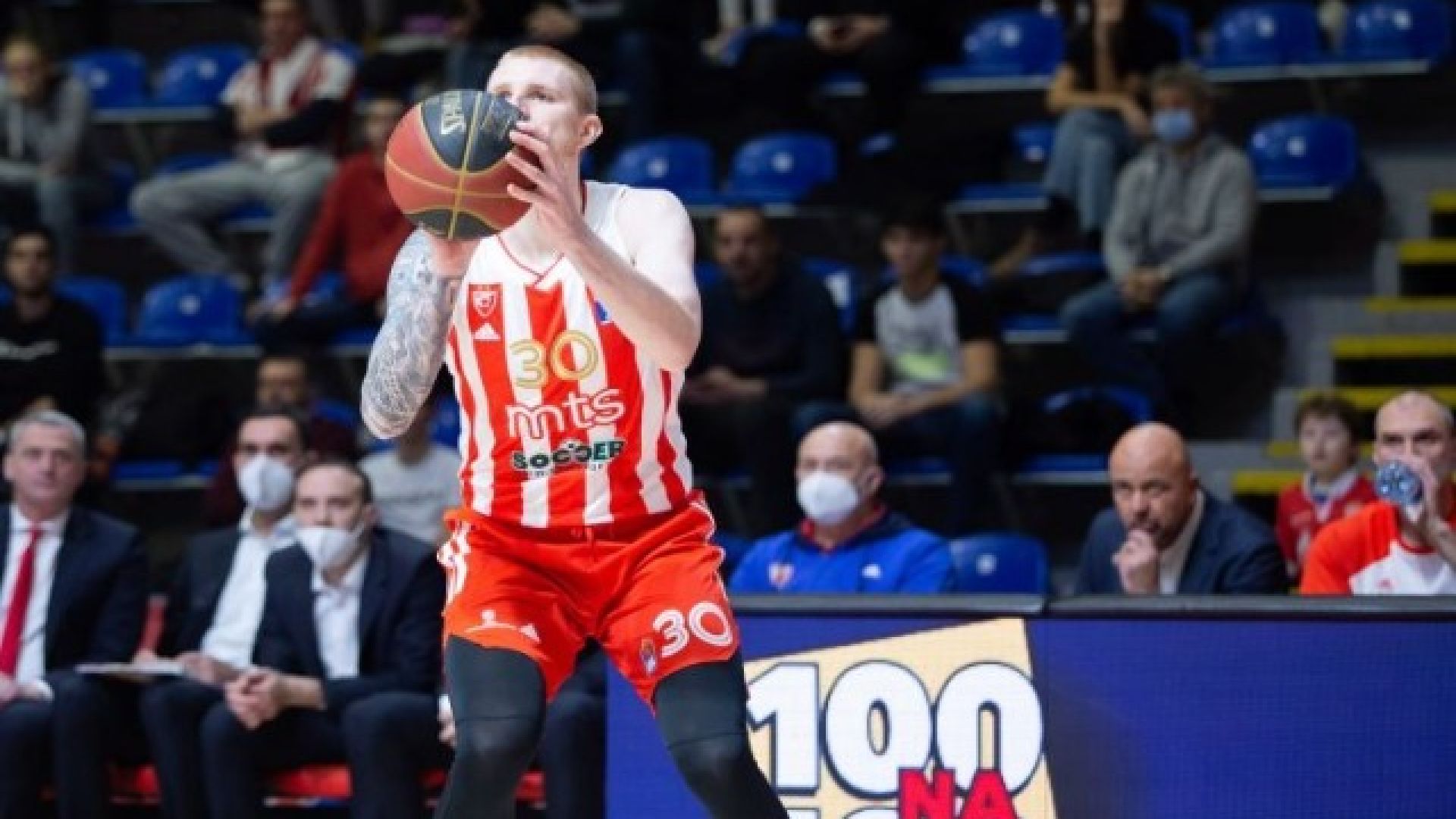 Οι παίκτες του Ερυθρού Αστέρα δεν ακούμπησαν το πανό με την Ουκρανική σημαία που έγραφε "Σταματήστε τον πόλεμο" στον αγώνα με την Ζαλγκίρις Κάουνας, κάτι που δημιούργησε διάφορα σχόλια.