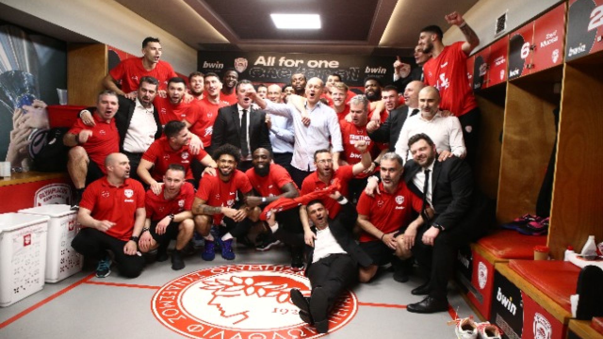 Πανηγύρια και χαρές ακολουθήσαν μετά την νίκη των Πειραιωττών στα αποδυτήρια, οπού βρέθηκαν τόσο οι πρόεδροι, κ. Παναγιώτης και Γιώργος Αγγελόπουλος, όσο και όλοι οι παίκτες, οι προπονητές και οι άνθρωποι των ερυθρολεύκων.