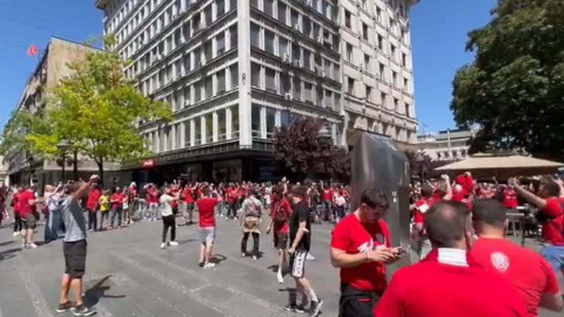 Χαρακτηριστική η ανάρτηση των «ερυθρόλευκων» στο twitter, με την οποία δείχνουν την πρωτεύουσα της Σερβίας να… ντύνεται στα κόκκινα.