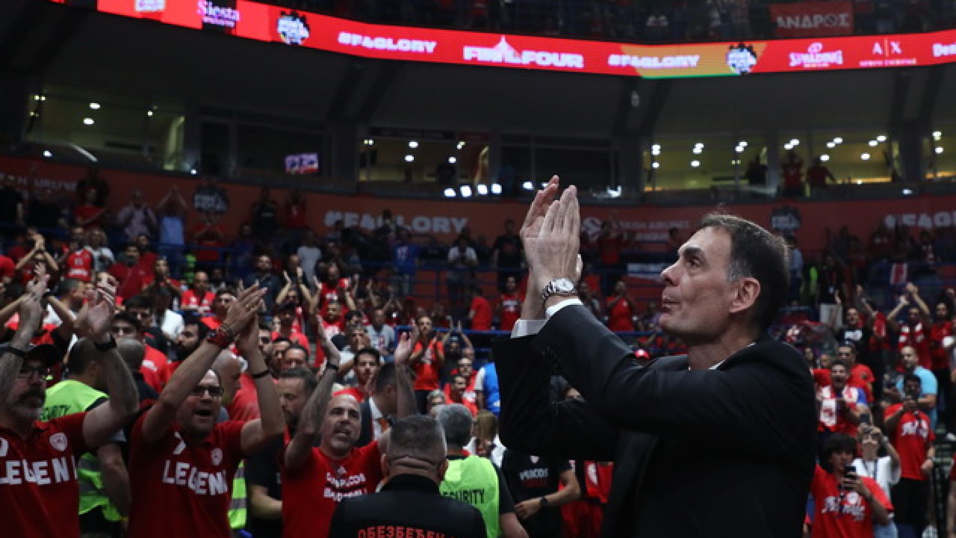 Φυσικά, αντίστοιχα αποθεωτική ήταν και η υποδοχή της κερκίδας στους "ερυθρόλευκους" παίκτες, κατά την είσοδο τους στο παρκέ, με την ομάδα να έχει κερδίσει ξεκάθαρα τους οπαδούς με την εικόνα της, δείχνοντας πως η συμμετοχή στο Final Four του Βελιγραδίου είναι μόνο η αρχή σε αυτά που θα ακολουθήσουν.