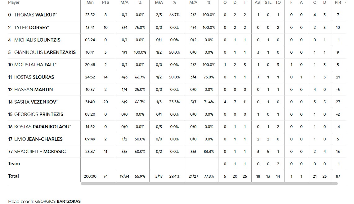 Ξεχώρισαν: Ο Σανλί με 16 πόντους και ¾ τρίποντα και ο Σλούκας με 14 πόντους και 7 ασίστ.