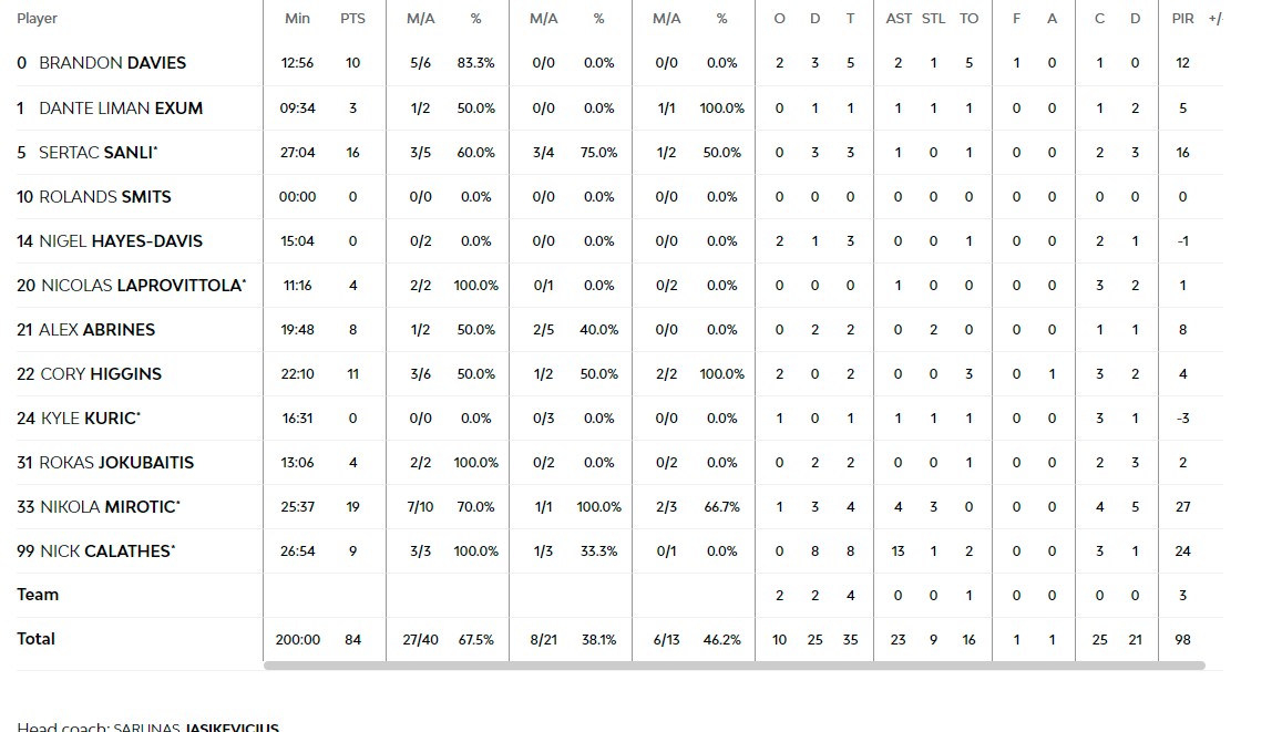Δεκάλεπτα: 20-18, 45-38, 62-56, 84-74