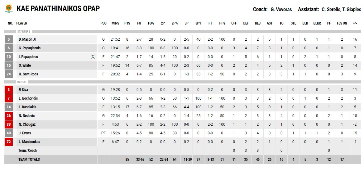 Το στοιχείο που έκρινε την αναμέτρηση: Το σερί 0-20 του Παναθηναϊκού στην αρχή, το οποίο έθεσε τις βάσεις για τη νίκη – πρόκριση.