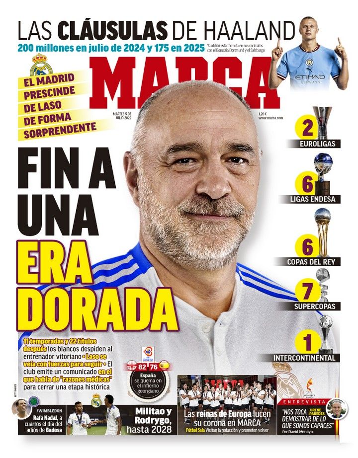 Με τη φράση «Το τέλος μιας χρυσής εποχής» αποτυπώνει η ισπανική εφημερίδα «Marca» το τέλος της συνεργασίας μεταξύ Λάσο και Ρεάλ Μαδρίτης.