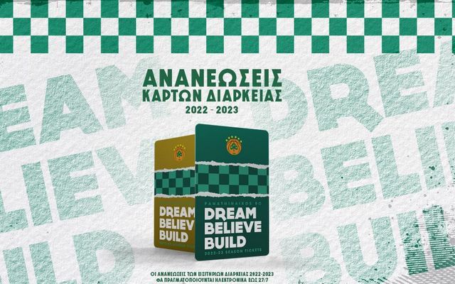 «Η ΚΑΕ Παναθηναϊκός ΟΠΑΠ ενημερώνει τους φιλάθλους της πως από σήμερα, Δευτέρα 18/7, ξεκινά η περίοδος των ανανεώσεων των εισιτηρίων διαρκείας της σεζόν 2022-2023 για τους περσινούς κατόχους διαρκείας.