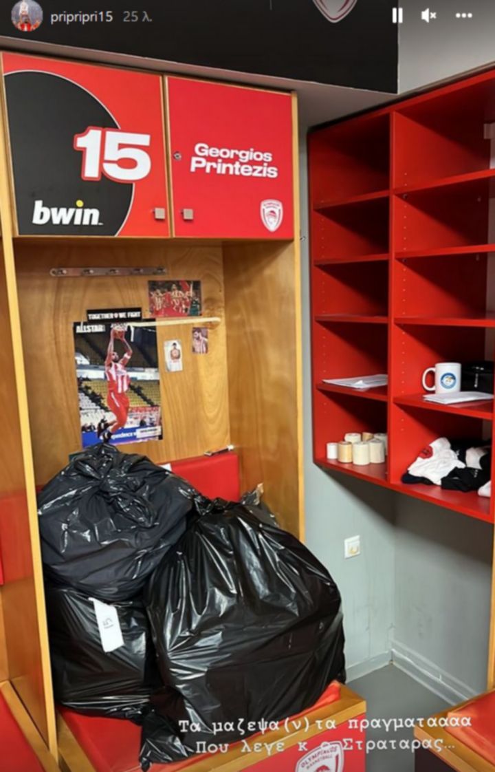 Την τελευταία φωτογραφία του από τα αποδυτήρια του Ολυμπιακού έβγαλε ο μέχρι πρότινος αρχηγός του Ολυμπιακού, Γιώργος Πρίντεζης, με τον νταμπλούχο Ελλάδας να κάνει ειδική μνεία σε ένα τραγούδι που ερμήνευσε ο Στράτος Διονυσίου.