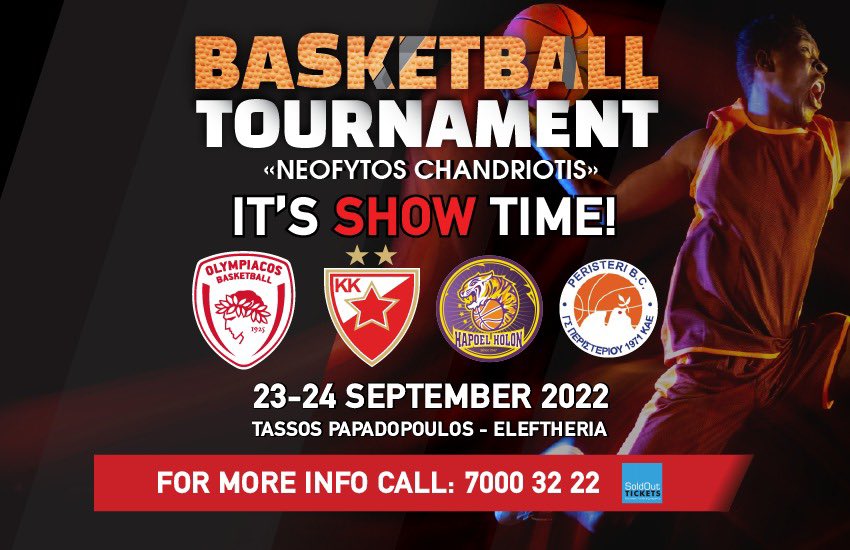 Ο Ολυμπιακός και το Περιστέρι θα συμμετάσχουν στο τουρνουά «Νεόφυτος Χανδριώτης», το διήμερο 23-24 Σεπτεμβρίου, στην κλειστή αίθουσα «Τάσσος Παπαδόπουλος – Ελευθερία», μαζί με τον πρωταθλητή Σερβίας και Αδριατικής Λίγκας, Ερυθρό Αστέρα και την πρωταθλήτρια Ισραήλ, Χάποελ Χολόν.