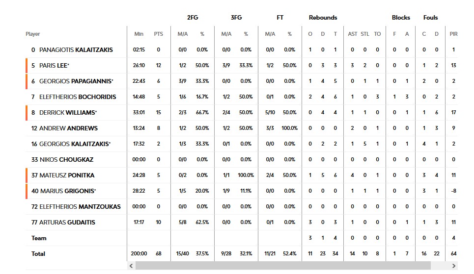 *Ο Παναθηναϊκός αγωνίστηκε χωρίς τον Νέιτ Γουόλτερς, ο οποίος είναι τραυματίας και απουσίασε και από τους αγώνες του SuperCup.