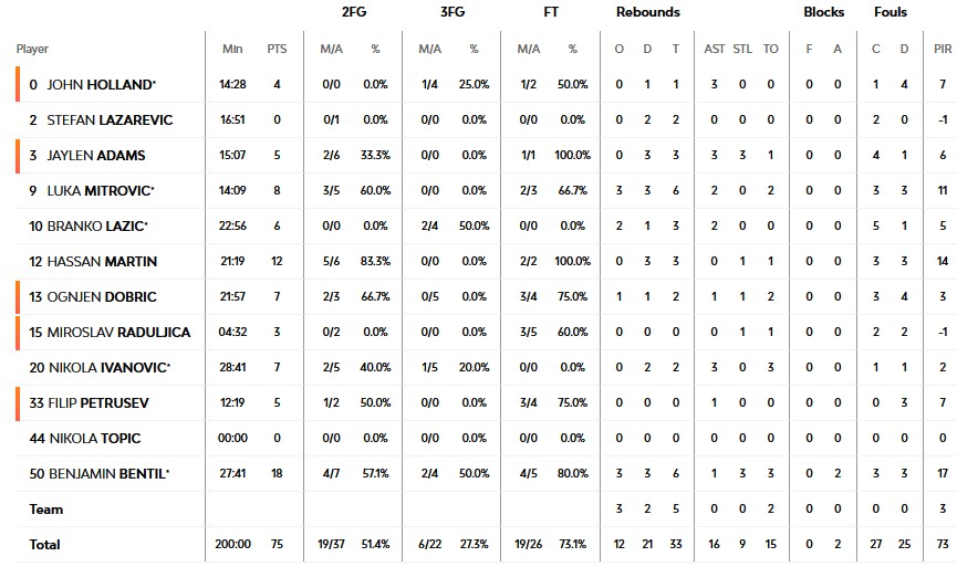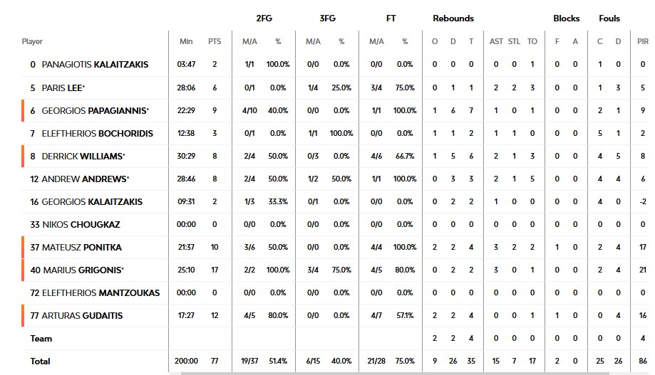 Ξεχώρισαν: Ο Μάριους Γκριγκόνις, αλλά κι ο Μάριους Ποντίτκα, όπως και ο Γκουντάιτς για τον Παναθηναϊκό, καθώς "έδρασαν" σε καθοριστικά σημεία. Μπεν Μπέντιλ με 18 και Χασάν Μάρτιν με 12 από τον Ερυθρό Αστέρα.