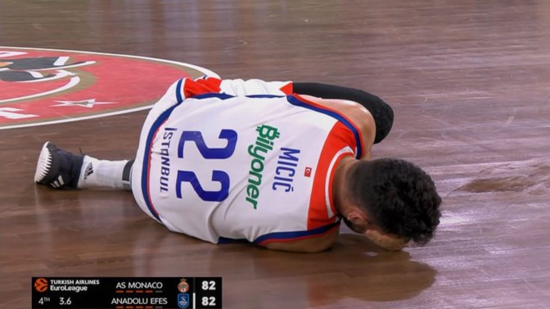 Απέμεναν μόλις 3.6'' δευτερόλεπτα όταν συνέβη το περιστατικό, με την αποστολή της τουρκικής ομάδας να έχει να ανησυχεί για την κατάσταση του Μίσιτς. Ο Σέρβος είδε τον Ντόντα Χολ να πέφτει στο πόδι του το οποίο μάλιστα γύρισε.