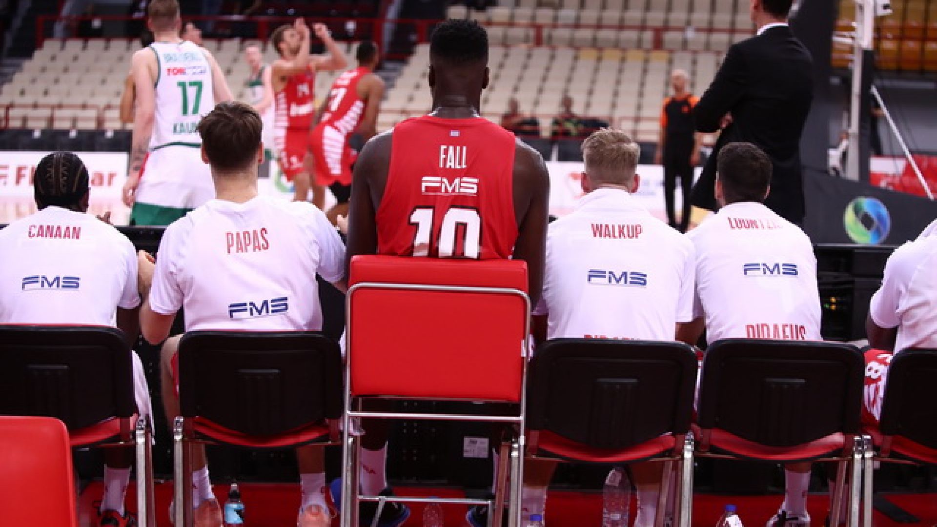 Όποιος παρατήρησε τις θέσεις του πάγκου του Ολυμπιακού, στο παιχνίδι με την Ζαλγκίρις, θα πρόσεξε πως μία καρέκλα ήταν διαφορετική από τις υπόλοιπες.