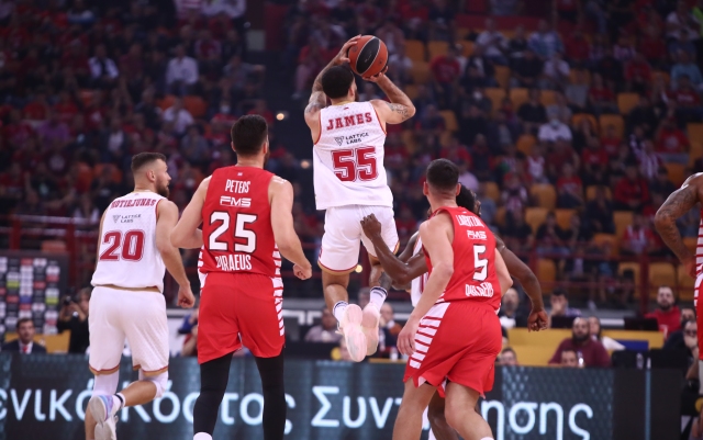 Η μεγαλύτερη διαφορά: +8 για τον Ολυμπιακό (41-33, 21’10''), +12 για τη Μονακό (54-66, 32')