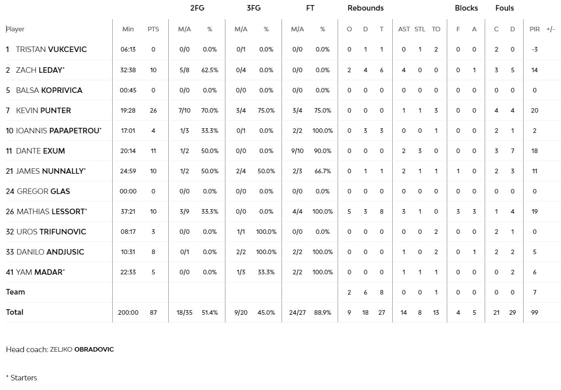 Πρώτος σκόρερ για τους ασπρόμαυρους ήταν ο Κέβιν Πάντερ με 26 πόντους, ενώ πολύ καλή απόδοση έπιασαν και Λεντέι, Λεσόρ, Έξουμ και Νάναλι που σημείωσαν πάνω από 10 πόντους ο καθένας.