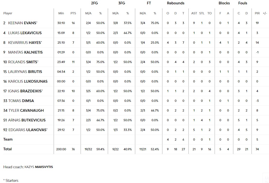 Στο τελευταίο δεκάλεπτο η Παρτιζάν δεν άφησε περιθώρια στους Λιθουανούς και έφτασε στη νίκη με το τελικό 87-76.
