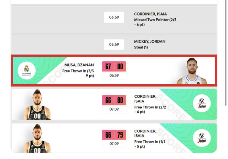Όμως μετά από λίγα δευτερόλεπτα, με την κατοχή για τη Βίρτους Μπολόνια και τη μπάλα στα χέρια του Κορντινιέ, το σκορ ανέβηκε για τη Ρεάλ Μαδρίτης από τους 66 στους 67 πόντους χωρίς κανέναν απολύτως λόγο.