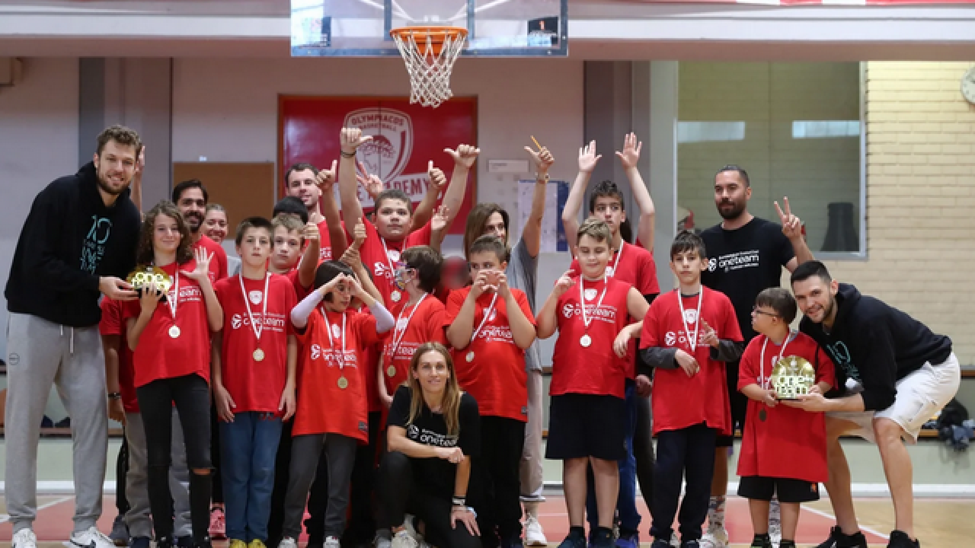 Πιο συγκεκριμένα όλο το team φωτογραφήθηκε με τα δύο «χρυσά» ΟΝΕ Team βραβεία (καλύτερο πρόγραμμα για τη σεζόν 2021-22 και Κώστας Παπανικολάου: καλύτερος πρεσβευτής για την ίδια χρονιά), ενώ στο τέλος οι δύο αστέρες του Ολυμπιακού έκαναν την… απονομή των χρυσών μεταλλίων στους αθλητές μας για την τεράστια συμβολή τους στην επιτυχία του προγράμματος!