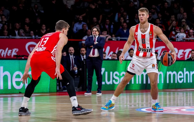 Ο Ολυμπιακός έφτασε στο 6-2 στην Ευρωλίγκα μετά το αποψινό 71-82 στη Γερμανία επί της Μπάγερν Μονάχου, παρά το ότι σχεδόν απώλεσε διαφορά 17 πόντων και το γεγονό ότι οι γηπεδούχοι πάλεψαν ως το φινάλε. Κι αυτό με τον Σάσα Βεζένκοβ να φτάνει στο 43 στο σύστημα αξιολόγησης με 20 πόντους, 13 ριμπάουντ και 4 ασίστ!