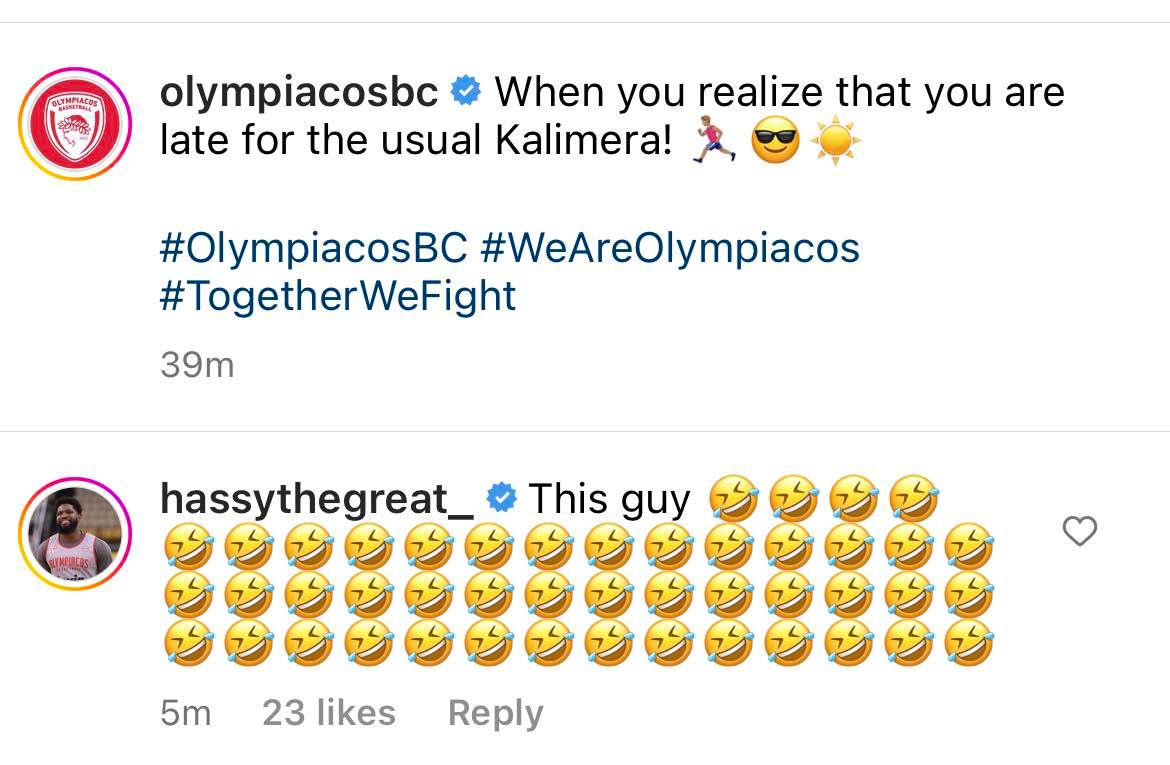 Μάλιστα, ένας από αυτούς που σχολίασαν το «ερυθρόλευκο» ποστάρισμα, ήταν ο Χασάν Μάρτιν. Ο Αμερικανός σέντερ, που συνεχίζει την καριέρα του στον Ερυθρό Αστέρα, δεν έχει ξεχάσει το πέρασμα του από τον Πειραιά, με τον Μάρτιν να λέει χιουμοριστικά «Αυτός ο τύπος», συνοδεύοντας το σχόλιο του με μπόλικα emoticons.