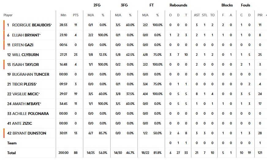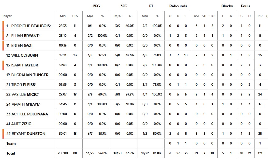 Ο Μίτσιτς ήταν αυτός που οδήγησε στο +20 (71-51, 31'45'') και ο Αϊζάια Τέιλορ στο +22 (73-51, 32') για να ακολουθήσουν δύο τρίποντα από Μαντζούκα και Γουίλιαμς με τη διαφορά να πέφτει στους 16 (73-57, 33'), ενώ στην άλλη άκρη ο Μπράιαν Ντάνστον έκανε ένα παιχνίδι βγαλμένο από τις καλύτρες μέρες του (13π., 8ρ, 3α., 2κλ. 1κ.). Ο Μπέικον έφτασε τους 20 πόντους στο δεύτερο ημίχρονο (79-63, 35'). Ο Λι τον ακολούθησε για το +13 (79-66, 36'), αλλά ο Ντάνστον συνέχισε, ο Κλάιμπερν έφτασε σε double double (23π. 10ρ.) και η Έφες Έφτασε στη νίκη με 88-69.