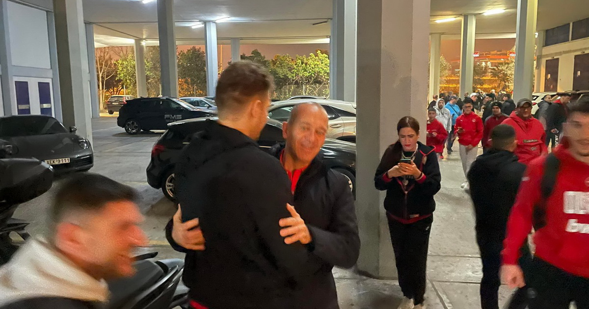 Φυσικά δεν έλειπαν και οι αγκαλιές ανάμεσα σε Αγγελόπουλους και Μπαρτζώκα, με τον κόσμο να γιορτάζει το… πάρτι στην έδρα του «αιώνιου» αντιπάλου.