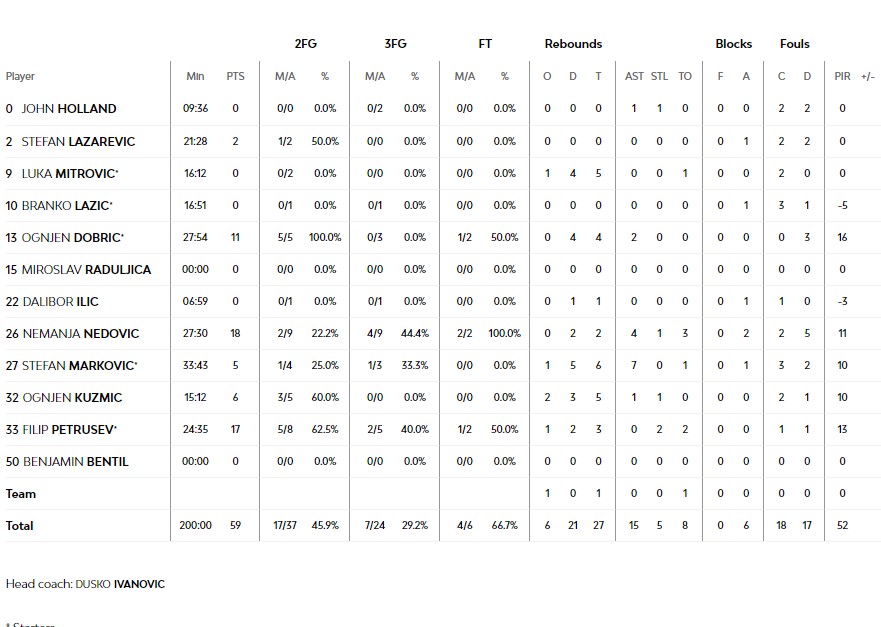 Έτσι, το τρίτο δεκάλεπτο έληξε με σκορ 51-57, ενώ το τελικό αποτέλεσμα στο Βελιγράδι βρήκε νικήτρια τη Ρεάλ με 79-59.