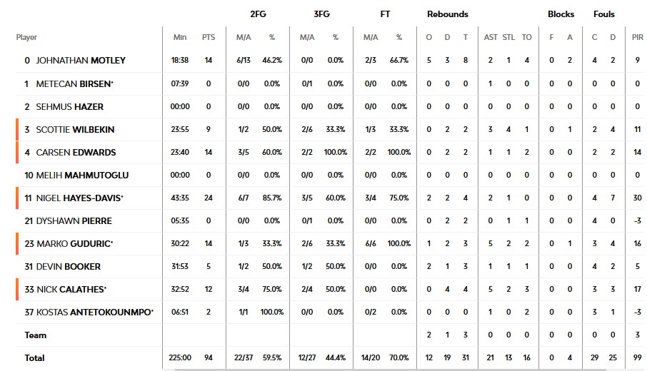 Η μεγαλύτερη διαφορά: +8 για τον Παναθηναϊκό (59-51, 30'), +5 για την Φενέρμπαχτσε (1-6, 2’10’’)