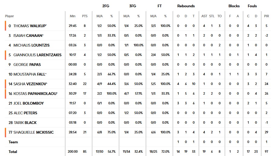 Ξεχώρισαν: Τεόντοσιτς, Σενγκέλια, Παγιόλα, Οτζελέγιε από την Βίρτους Μπολόνια, Παπανικολάου, Βεζένκοφ, ΜακΚίσικ, Γουόκαπ για τον Ολυμπιακό
