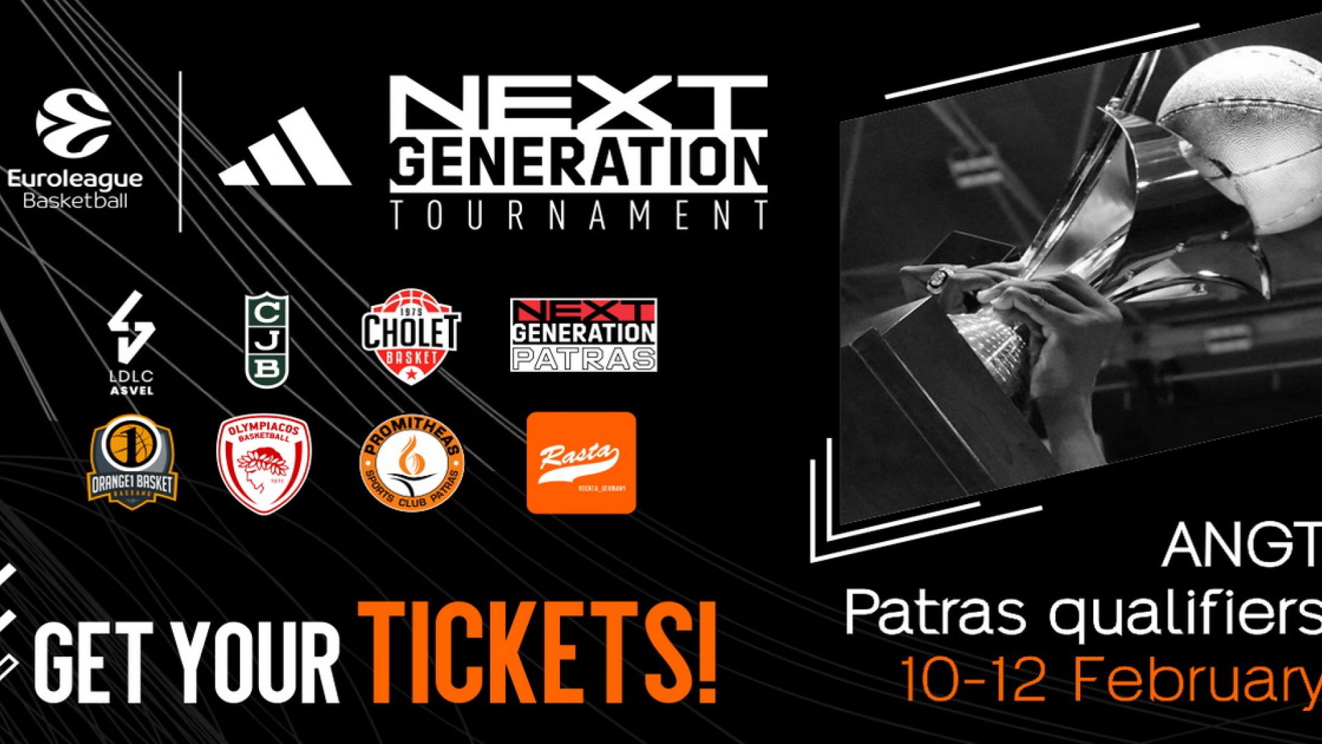 Το «Αdidas Next Generation Tournament» είναι διοργάνωση της Euroleague, στην οποία συμμετέχουν επτά εκ των κορυφαίων ευρωπαϊκών Συλλόγων U18 καθώς και η Next Generation Team Patras, μιας ομάδας επίλεκτων από όλη τη Ευρώπη. Στο τουρνουά της Πάτρας θα λάβουν μέρος, διεκδικώντας την πρόκριση στην τελική φάση του Κάουνας, ο Προμηθέας, ο Ολυμπιακός, η Joventut Badalona, η Cholet Basket, η Rasta Vechta, η LDLC ASVEL Villeurbanne, η Orange1 Bassano και η μεικτή ομάδα NGT Patras, με παρουσία παικτών από όλη την Ευρώπη με προπονητή τον Petteri Koponen. Να σημειωθεί ότι αυτή θα είναι η δεύτερη διαδοχική χρονιά που θα φιλοξενηθεί στην Πάτρα προκριματική φάση του ANGT, που είναι η σημαντικότερη διασυλλογική διοργάνωση στην Ευρώπη στο ηλικιακό επίπεδο κάτω των 18 ετών.