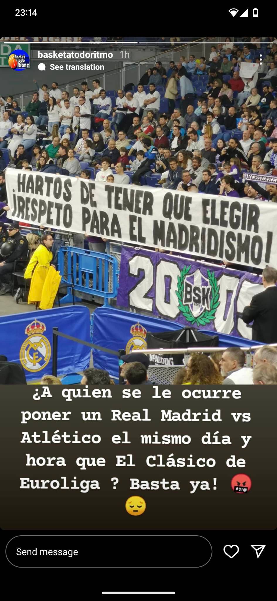 Πανό διαμαρτυρίας σήκωσαν οι οπαδοί της Ρεάλ Μαδρίτης καθώς την Πέμπτη 26/1 υπάρχουν ντέρμπι σε ποδόσφαιρο και μπάσκετ σε παραπλήσια ώρα.